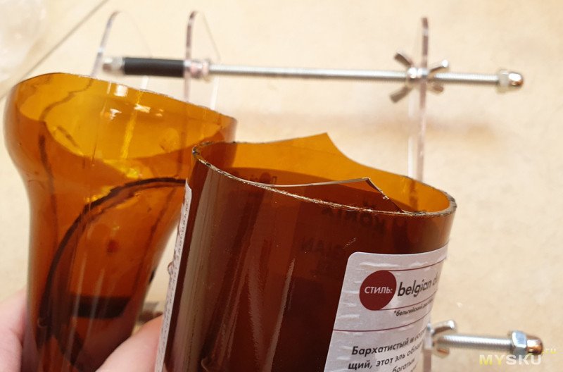 Стучать мне не помогло — бутылки от этого совсем не желали красиво распадаться на две части. С «контрастным душем» результат был, но не тот, который я хотел бы получить: