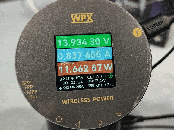 Ещё одна 4-х часовая прожарка. И снова беспроводной модуль для зарядки гаджетов (Magnetic Wireless Charger). UGREEN W709 Uno 2-in-1 имеет модуль с современным стандартом Qi2 мощностью 15Вт. А также есть площадка для кейса наушников и дополнительный выход подключения внешнего модуля для часов. Суммарная транслируемая мощность 25Вт.