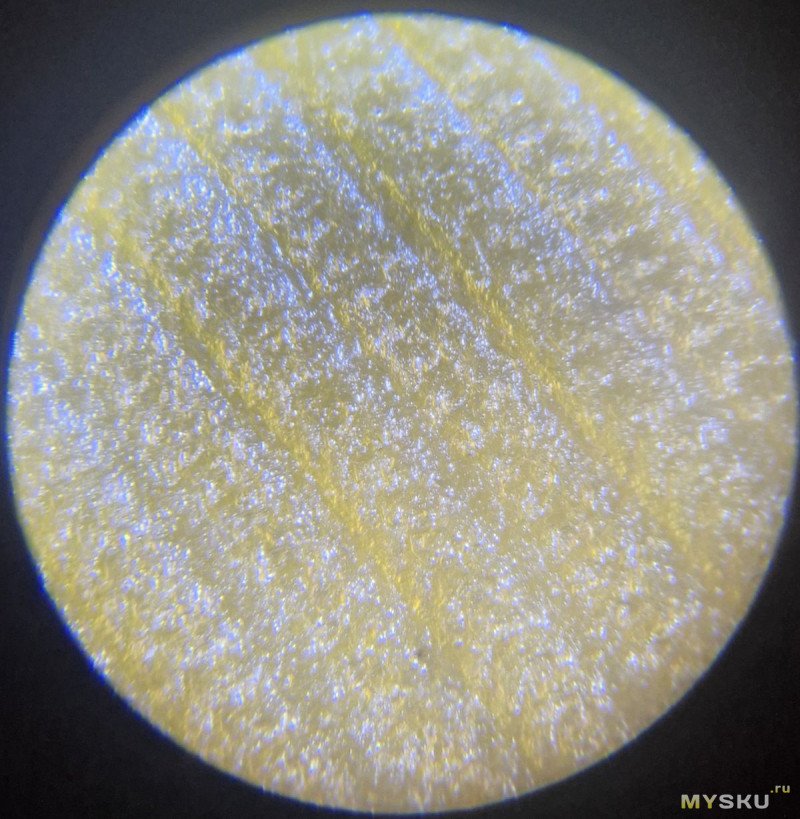 Накладки из полупрозрачного термостойкого пластика Ultem, есть небольшая текстура, чтобы не скользил. Форма бочкообразная (видно в торце), но накладки стоят на плашках не по всей высоте, части выступают сверху и снизу миллиметра на 4. Это неудобно, наминает руку при силовой работе. Но смотрятся красиво, гармонируют с полировкой плашек корпуса. У черного варианта плашки внутри черные.Текстура накладок:
