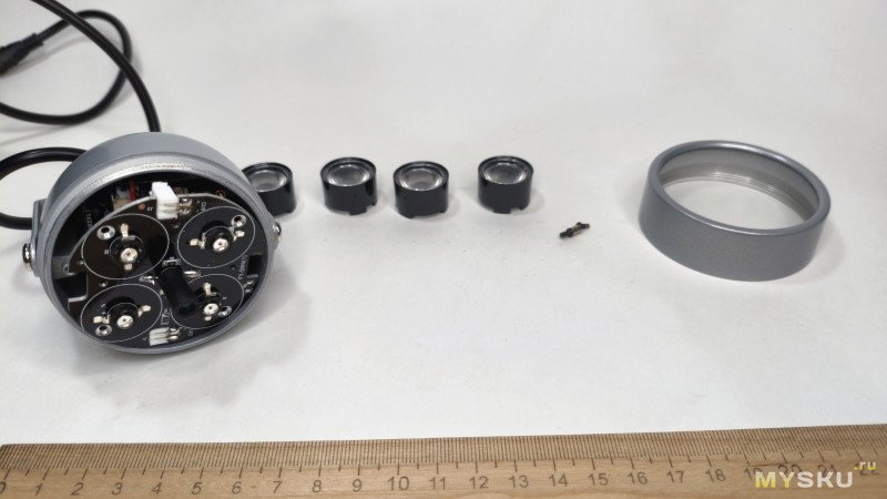 Разбирается прожектор элементарно — раскручиваем корпус голыми руками. Кстати, между половинками корпуса есть уплотнительное кольцо.