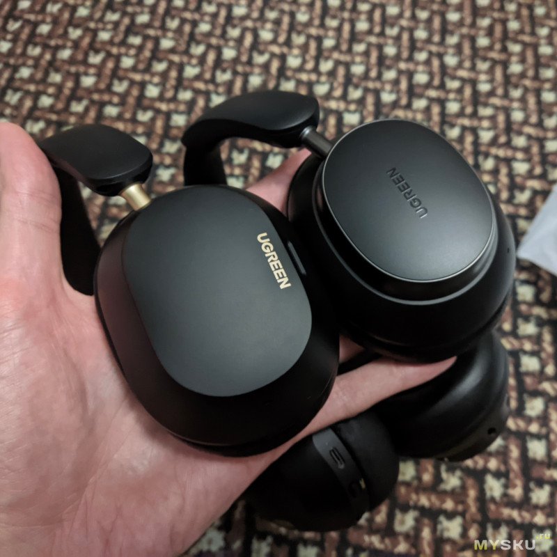 В итоге, если подбивать все за и против, с одной стороны хочется и похвалить за неустанное улучшение и внедрение интересных плюшек за мизерный ценник, а с другой, приходится всё сложнее недостатки искать) — в этой модели я не смог подключиться ни к андроиду, ни к ПК по кабелю Type-C — гарнитура просто выключается и начинает заряжаться (мол, для этого мы тебе вывели аналоговый 3.5 мм разъем и кабель дали в комплекте)… плюс к этому, не очень привычно было нащупывать маленькие кнопки на маленькой внутренней части чашки — так и хочется найти их поближе к амбушюру, где они располагались у Max 5c.