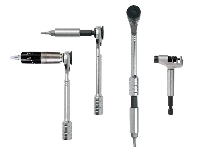 Дело в том, что можно в разных комбинациях соединять трещотку, биту и удлинитель (и динамометрическую насадку в данном случае). Можно сделать Г-образно, а можно в одну линию: