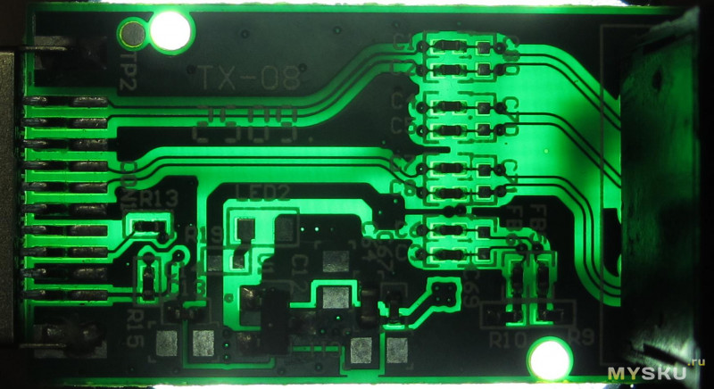 Плата с двух сторон, на одной из плат вместо блокировочного конденсатора по питанию (c10) посажена коротящая это самое питание сопля припоя: