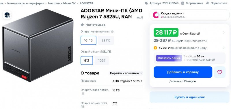 НО за 32 (+около 3 т.р. таможня) там же обнаружился WRT Pro на Ryzen 7 5825U, а это уже отличный вариант для замены старенького home-lab'а на HP Microserver Gen8 (E3-1265L V2, 16Gb RAM — к сожалению, 32Gb туда в принципе никак не встаёт).