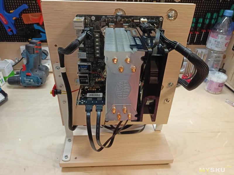 Минусом будет всего 2x2.5G сетевухи, но при правильном бондинге с них можно вытащить почти 5Gbit/s, а при очень сильном желании — вместо одного из NVMe можно будет воткнуть переходник и сколхозить подключение 10G карточки.