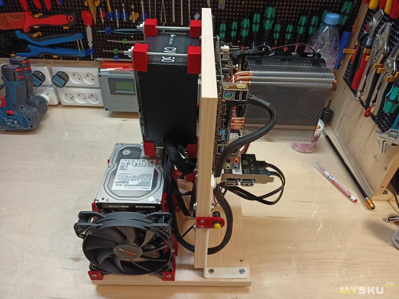 Что до подвесов — я первый раз подцепил винт на подвес больше 20 лет назад, отличная тема — по воздуху от них не так чтобы много шума передаётся, больше именно вибрациями через что попало. Массивный корпус сам по себе в этом плане помогает слабо — я пытался, даже прикупил роскошный гробик от рабочей станции Fujitsu весом под 15 килограммов. А вот его комбинация со всё теми же резинками от трусов отлично работает…