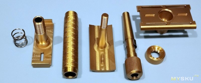 Бронзовые, стальные, титановые бритвы стали покупать, т.к они теоретически более долговечны, чем простейшие бритвы со штампованной головой или из ЦАМ (zamak). Бритва из ЦАМ может просто разлететься, если вы ее уроните на пол. В бритье разве что алюминиевые бритвы отличаются чуть худшим скольжением относительно бритв из других материалов. А еще пластиковые и бакелитовые бывают. И бреют они совсем не хуже. Та же пластиковая Wilkinson тому пример. Да, даже копеечная Sik Bay, с ценой 3 рубля ведро.