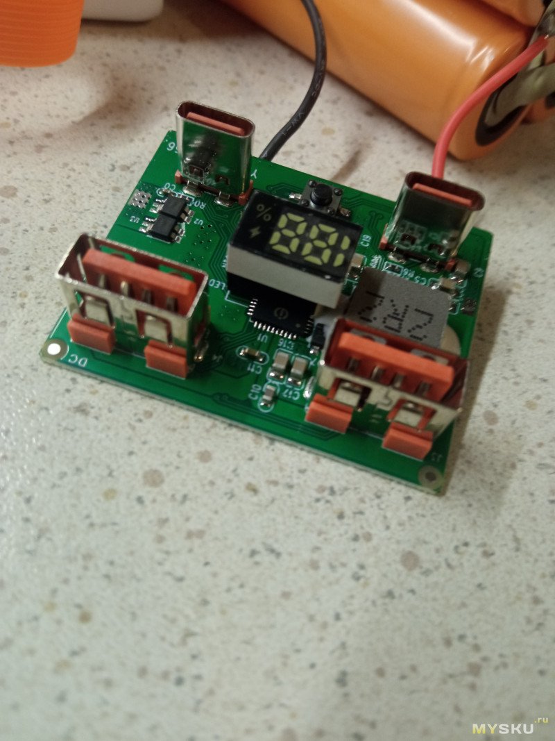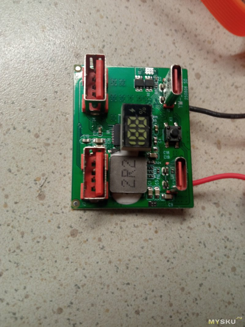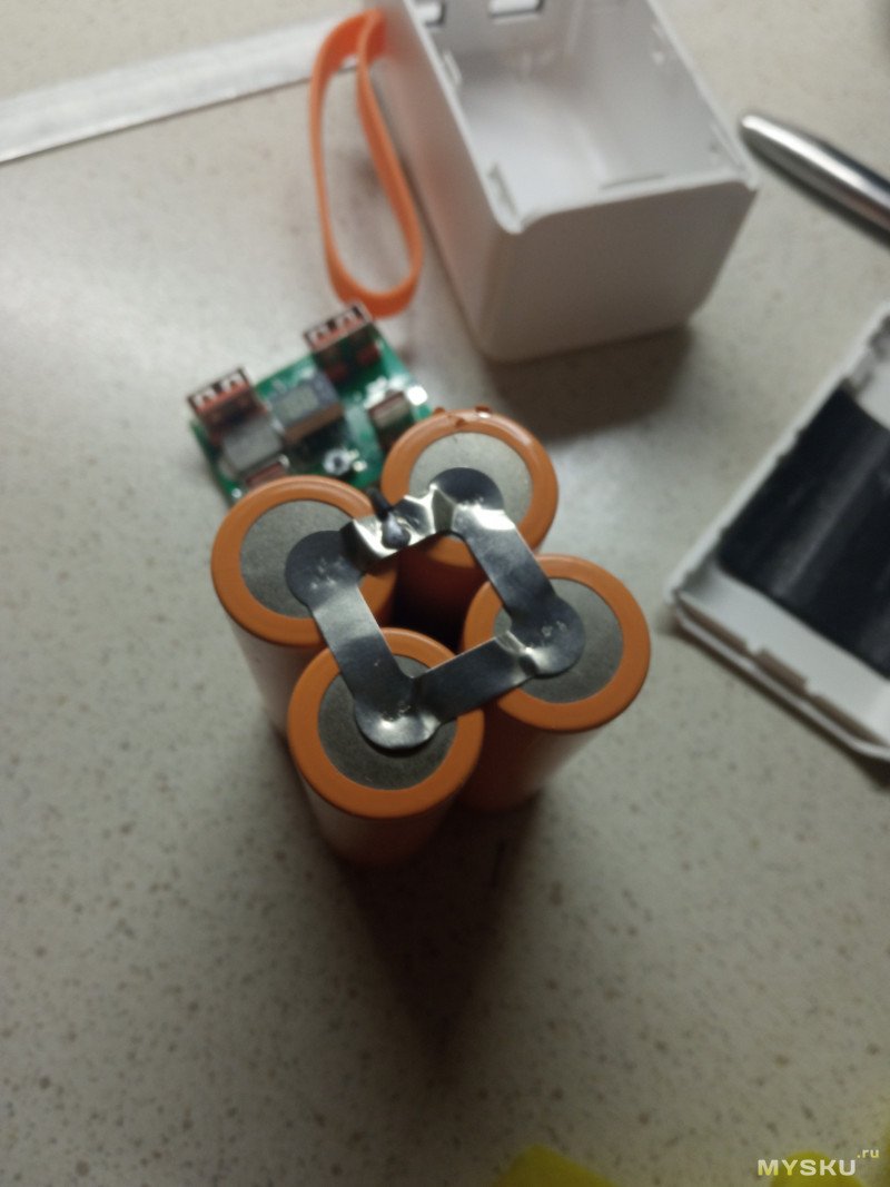 Итак, вскрытие состоялось. Вскрытие стандартное. Внутри 4 31700 без маркировки, как и следовало ожидать — в параллель. Основной контроллер — под индикатором, поэтому маркировка недоступна. По сути — обычная банка за недорого без 20в. Реклама на 30000 — преувеличение. Максимум 20000 при стандартных 5000 на ячейку, что не факт. Планирую замерить ёмкость для начала на залив, дальше по возможности. Ну и как принято в заметках — фото в кучу Так как половина защёлок при вскрытии сломаны, пока использую резинки, чтоб не развалилось. Потом уже склею.