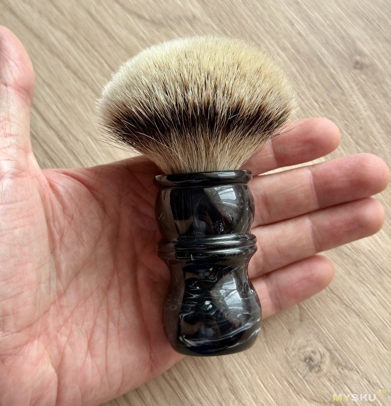 У Yaqi за 37$ есть помазок с узлом Silvertip и черной ручкой под мрамор. Там узел 24мм и форма другая-он шляпкой гриба раскрывается и тактильно работает чуть иначе (пышной шляпкой, как травяной мешочек для массажа). Тоже весьма достойный вариант, но с учетом одинаковой цены и того, что это ваш первый барсук, я бы в сторону Boti все же склонялся- уж очень он мне понравился! Помазки от Yaqi с узлами из двухполосного барсука (2 band budger) будут прилично жёстче и с бОльшим массажным эффектом.