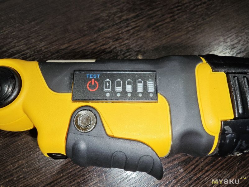 Первый индикатор красный, он сигнализирует о полном разряде аккумулятора и светится даже при напряжении 3В.