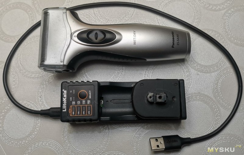 Но в этих электробритвах заложен косяк — неправильное зарядное устройство по ущербной схеме трансформатор/диод/резистор. С одним новым Ni-Mh аккумулятором со штатной зарядки хватало на 7 раз побриться. После переделки зарядного устройства на LiitoKala Lii-100 — до 20-22 раз. Однако я об этом недавно уже говорил.