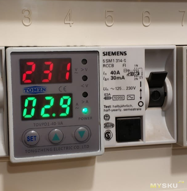 Вообще задержка при одинаковых напряжениях не вполне стабильная, при 240->380 наблюдал от 450 до 900мс. Ее сокращения при сильном превышении напряжения не наблюдается.Когда напряжение входит в допустимые пределы — вместо амперметра начинается обратный отсчет задержки включения.