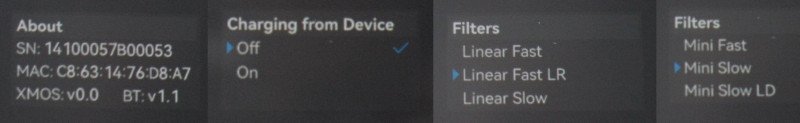 Выводятся: тип подключения, заряд АКБ, активация усиления (гейн), формат аудио, аудио кодек по BT, частота дискретизации. При работе дисплей быстро гаснет и не отвлекает. Но для первоначальной настройки нужен (но можно ее провести через мобильное ПО).