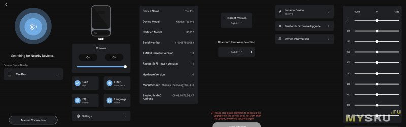 Сегодня отдельными портативными аудиоплеерами пользуется меньше людей, смартфон вытеснил многие специализированные устройства. А вот приставка Khadas Tea Pro добавляет смартфону качественных музыкальных возможностей. По контенту — PCM (44.1 kHz to 768 kHz), DSD (64 to 512, Native) по кабелю, по Bluetooth кодеки LDAC и aptx. Звук серьезный, детальное и натуральное воспроизведение качественного контента. Всегда можно поиграть множеством типов фильтров и эквалайзером. Внешне тоже выполнен миниатюрно и качественно, не утяжеляет гаджет, может подзарядить при необходимости (2100 мАч). Но постоянно протирать зеркальные поверхности приходится. Поддерживаются два типа присоединения проводных наушников. Аппаратная платформа известная (чип ЦАПа ES9039Q2M), на фильтрах и буфере TI OPA1612 и Ricore RT6863. Да, не самый мощный встроенный усилитель, но для 32 Ом запас по громкости есть. Дорого? Возможно, но аудио устройства такого класса совсем бюджетными быть не могут.