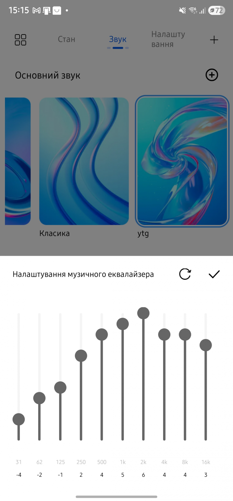 Во вкладке Звук можно включить готовые пересеты эквалайзера, так и побаловаться с пользовательскими настройками. По оформлению видно творческое бессилие дизайнеров. Что это за бессмысленные полоски и круги, никак не ассоциирующиеся с тяжёлым басом и роком? И чем отличаются, «основной звук» и «звуковой рынок» (что бы это не значило)? Только хотел написать, что эквалайзером обычно ничего не исправишь, и вспомнились старые добрые времена и «волшебные» настройки в смартфонах Сяоми в паре с родными проводными наушниками. Помните Пистоны? Там действительно, многое менялось.