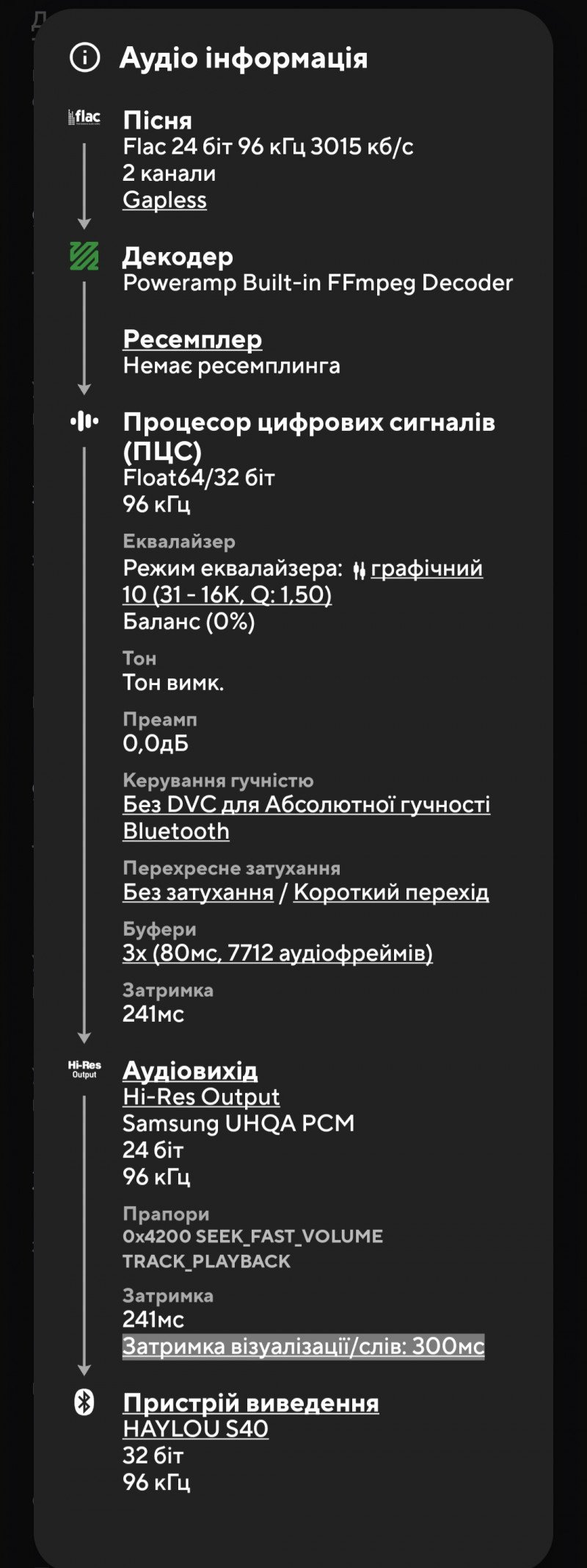 Источник воспроизведения — Samsung S23 Ultra, плеер —PowerAMP.
