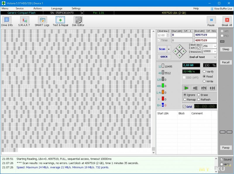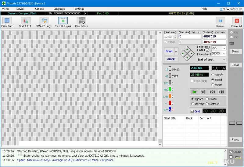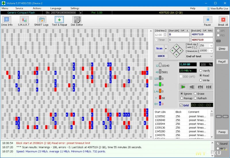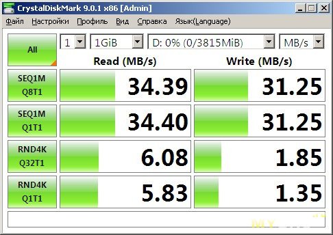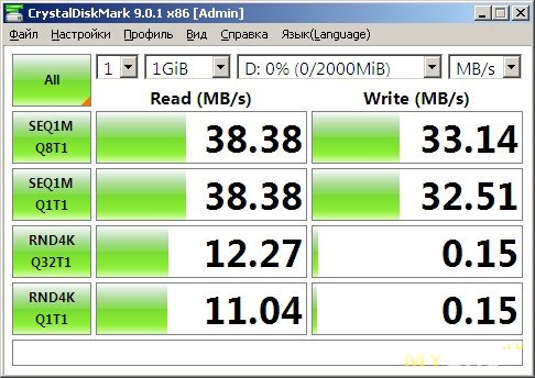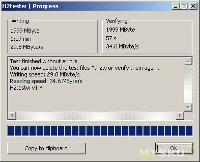 Первой была 2 ГБ, тест шёл несколько часов, что ненормально долго для такого объёма. Результат: