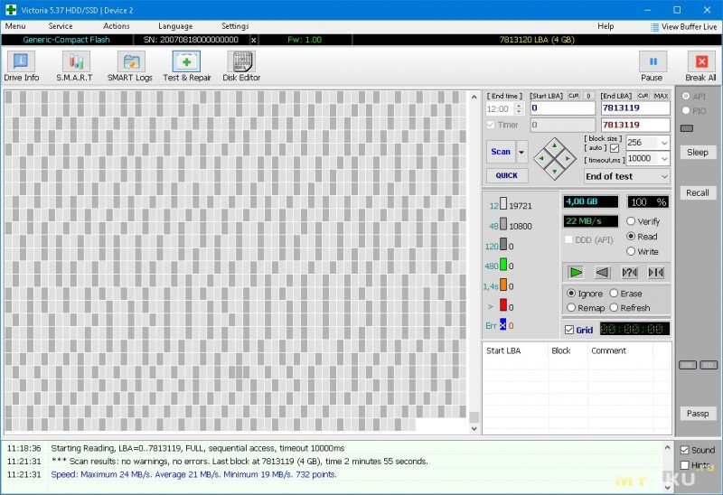 Эту карту я тоже оставил лежать без дела на 4 месяца. Повторно запускаю Викторию: