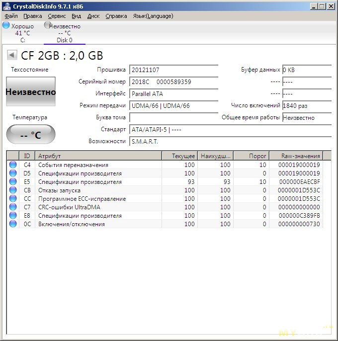 А вот CrystalDiskInfo при старте долго думал, но её вообще не увидел. Нет SMART — нет диска?