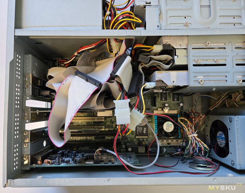 Лет 15-20 назад я таких от 386 до первого пня списал и утилизировал много десятков, а тут вдруг стало жалко выкидывать. Видимо, старею. Включил — жутко гудит вентиляторами, но в BIOS заходит. Оставил в дальнем углу, когда будет время и желание, то отмою и Windows 95 накачу. Ей как раз недавно 30 лет стукнуло.