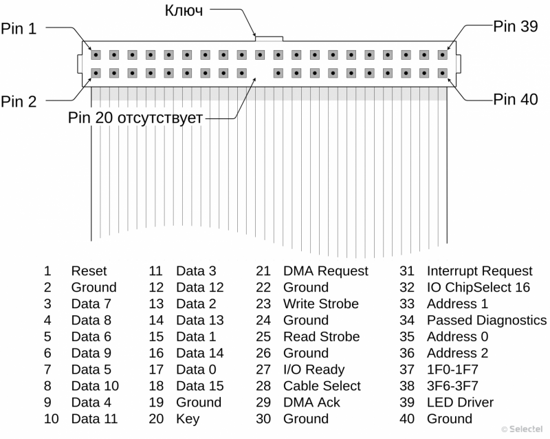 А разве на IDE шине предусмотрено питание? Что-то я о таком не помню. Вот нашёл спецом картинку: