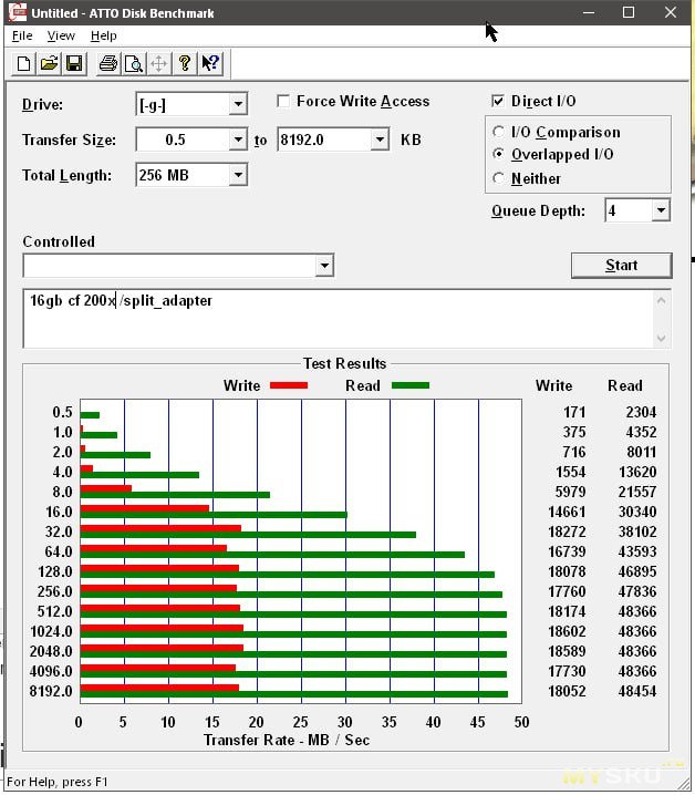 Скорости чтения и записи у обеих карт совпали, что натолкнуло меня на подозрение, что это ограничение старого USB 2.0 ридера. Но из трёх моих, у которых есть слот для CF, ничего более быстрого не нашлось, и даже наоборот — в одном карты читались ещё медленнее. Поэтому нашёл старый компьютер с контроллером IDE и подключил к нему, заодно проверив адаптер IDE — CompactFlash.