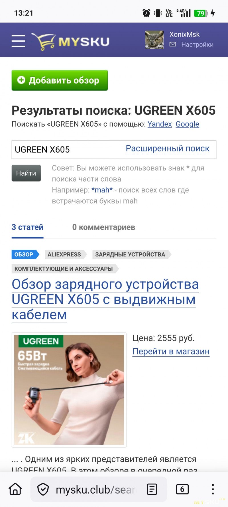 Итог для себя я сформулировал так: UGREEN X605 оправдала покупку на все сто. Да, это не замена мощному многоразъемному заряднику для офиса, но как универсальное решение формата «зарядка и кабель в одном корпусе» она делает жизнь проще. Для поездок, для минимализма на столе и просто для того, чтобы перестать путаться в проводах это идеальное решение. Именно за этим они и нужна мне. Да, вы можете сказать, что есть зарядные блоки дешевле, а вон там, где-то, есть кабель за 3 копейки. Но постойте, это разные устройства. Для каждого случая свой инструмент. Вот так. Ну и для того, чтобы немного сэкономить, вы можете воспользоваться промокодом UGKFE4, который снизит цена на 6 долларов и действует до конца октября.