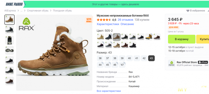 На осень, сейчас на низкую плюсовую температуру были взяты кроссовки от Xtep, тоже очень мягкие. А на зиму взял Rax. Когда приехали, походил по дому. приятные ощущения, замша (ну или незамша), очень мягкая, посмотрим, как будут скользить и как зимой себя поведут. Раксы чем еще хороши — они широкие. В прошлую зиму брал от Баасплоа ботинки — они узкие, и истерлись внутри сильно.