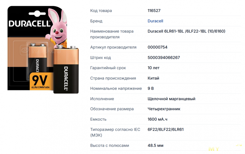 А во-вторых, не надо забывать, что у Кроны вольтаж 9В, против 1,5В у щелочных батареек формата АА или 3,7В у литиевых аккумуляторов.