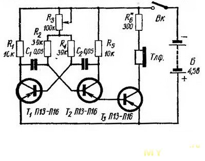 Почему-то эту схему я жестко прогулял в школьном радио-кружке, а потом, когда друзья собирали звонки с кучей мелодий в корпусах от мыльниц, мне уже совсем не понятно стало и кружок был покинут, тем более дома Батя приносил платы от списанной техники на распайку, интересно и с ними возиться было.