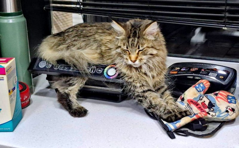 В очередной раз изумляемся способности мохнатых с комфортом разместиться даже в самом неприспособленном для этого месте: