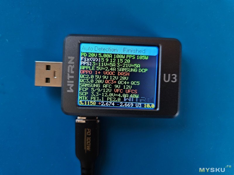 Даже проверил пару других кабелей — у Wekome 100Вт — одинаково 96 мОм, а у безымянного 65 Вт — тоже немного отличается 80 мОм на минусе и 90 мОм на плюсе. Буду знать, что так бывает.
