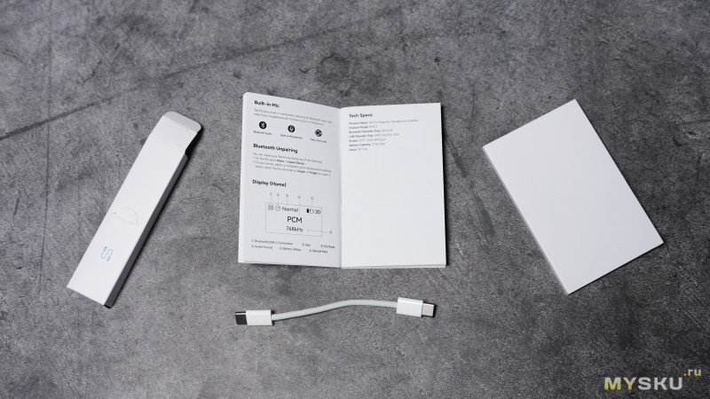 В комплекте поставки двусторонний USB-C кабель для Android-устройств. Существует чуть другой тип комплекта, включающий кабель USB-C на Lightning для iPhone. кабель 10см, гибкий в тканевой оплётке.