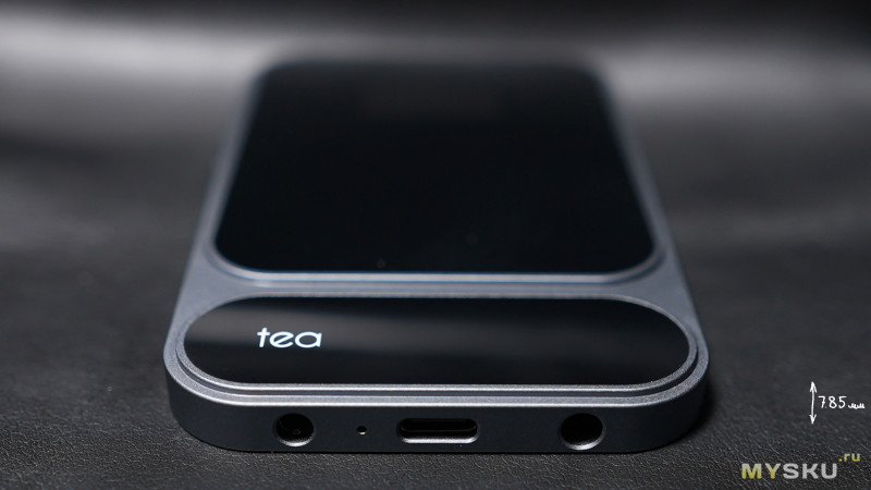 При взгляде под определённым углом в стекле можно увидеть небольшой дисплей 0.95" 120×240, сделанный по Amoled технологии. Нижняя стеклянная вставка с надписью Tea — декоративная. Стекло маркое и при соприкосновении с пальцами быстро собирает