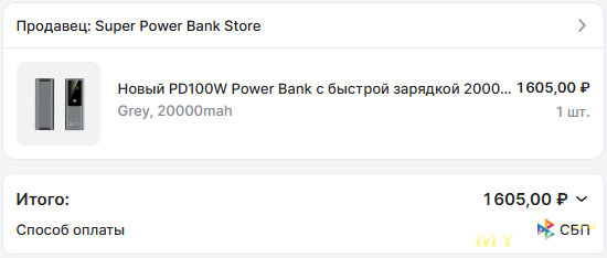Внимание! Павер-банк тестировался в режиме 100Вт на порт С1 (с кабелем)