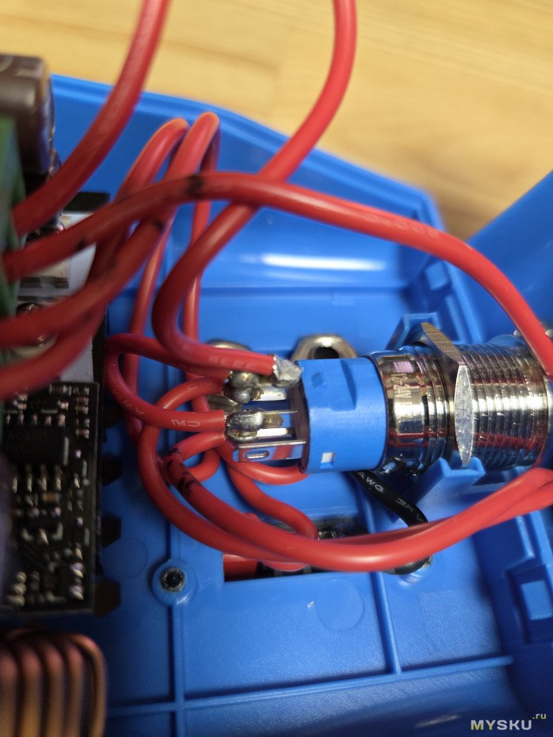 Провода кнопки никак не изолированы, так же видно как оригинально решено крепление кнопки с пазом для её гайки: