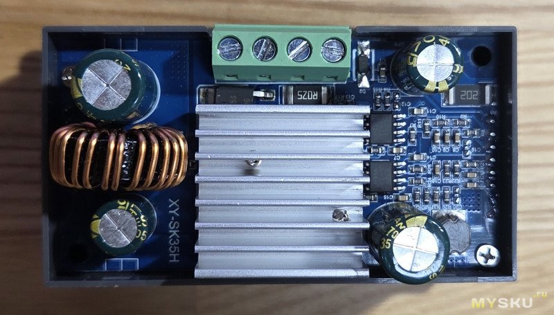 Штатно в корпусе приходит преобразователь XY-SK35H который, в отличие от RK6006 является BUCK BOOST преобразователем, т.е. умеет выдавать напряжение больше чем есть на аккумуляторе (поднимает до 30 вольт), RK6006 так не умеет, но мне оно и не надо.