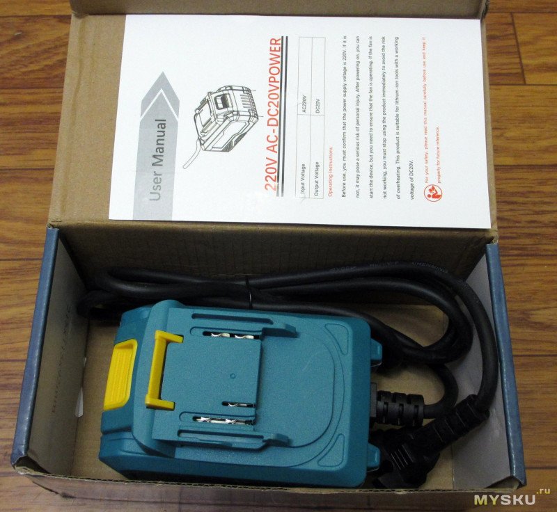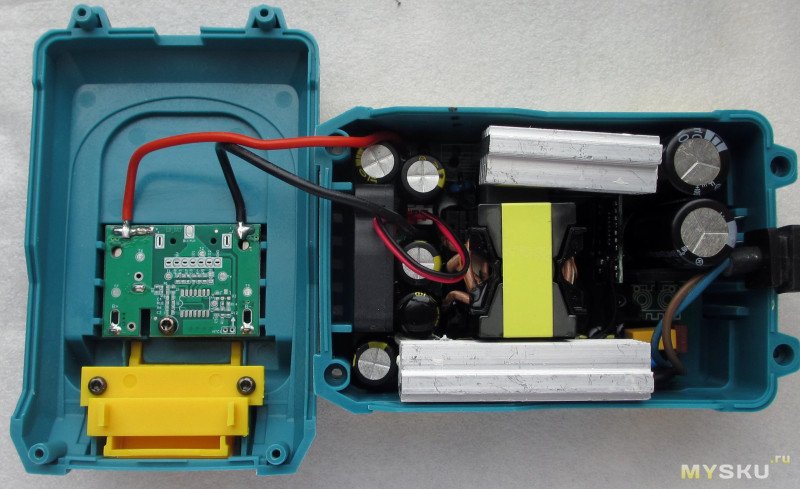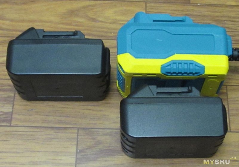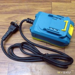 БП для питания аккумуляторного инструмента со средним потреблением от сети. В лоте так же есть более мощный аналог, отличный компоновкой — у него инструменту идет кабель с разьемом.