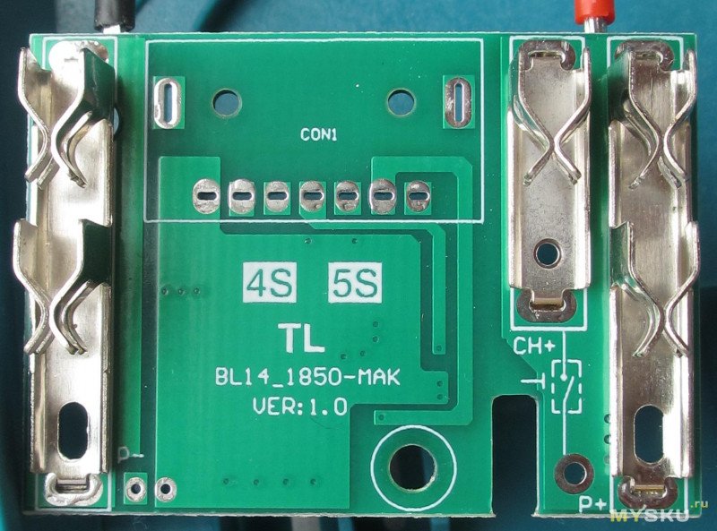 Оба плюсовых контакта запараллелены, так что оригинальный инструмент должен работать. Подключена основной проводами с маркировкой тоже awg15.