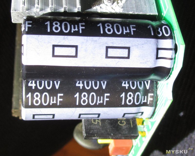 входные емкости 2шт 180мкФ*400, выходные 5шт 1500мкФ*35В