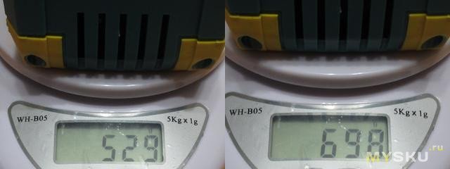 Весит сравнимо с двухрядными на 18650 (без и с кабелем — 530/700г):