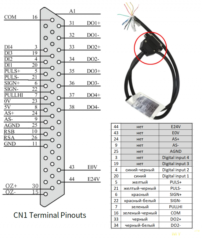 Комплектный кабель для разъема CN1 конечно не полный. Возможно придется добавлять проводники для некоторых часто употребляемых сигналов: