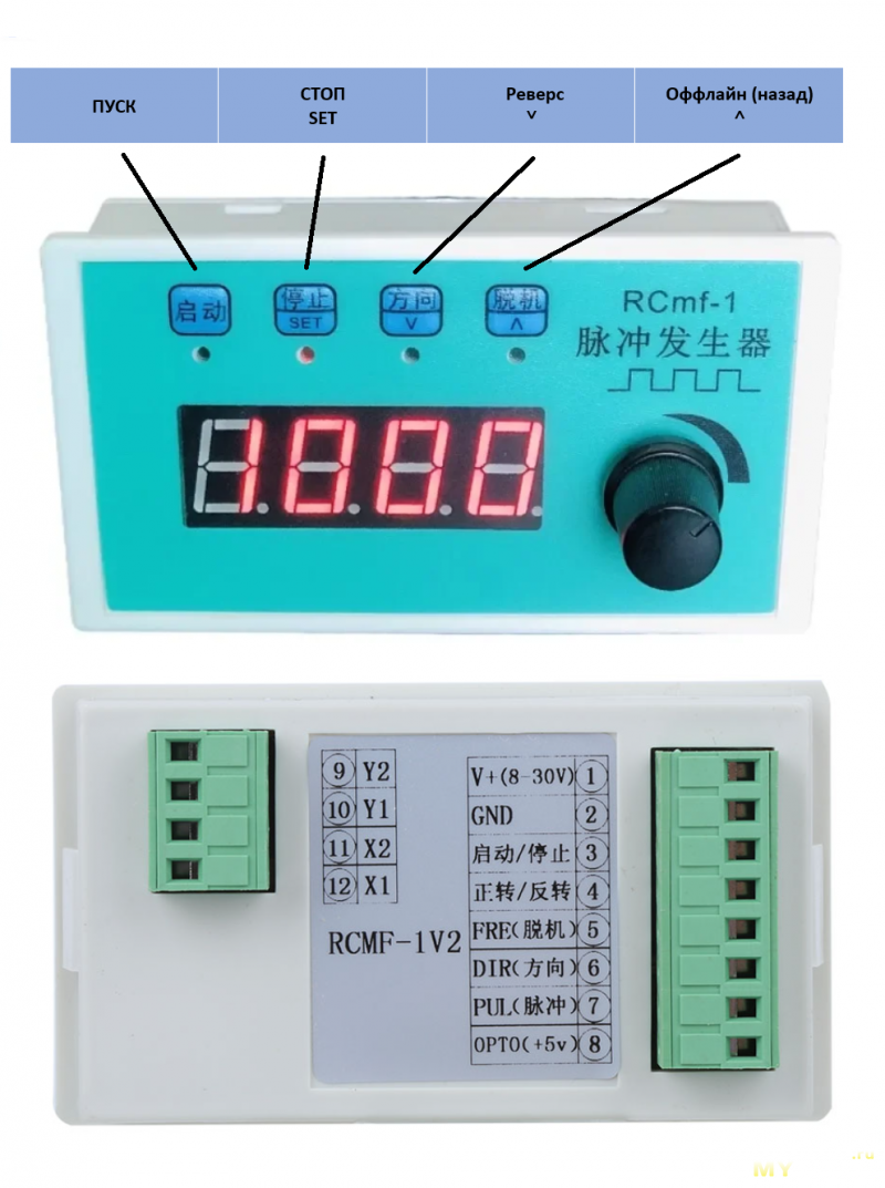 Наиболее удобное управление серводвигателем можно организовать, например, с помощью внешнего генератора импульсов. Вариантов достаточно много, я купил бюджетный, но, как мне показалось очень удобный (для моих целей): генератор импульсов RCMF-1. Отзывов о работе и настройке такого контроллера очень мало. Более подробно возможности устройства описал в другой статье.