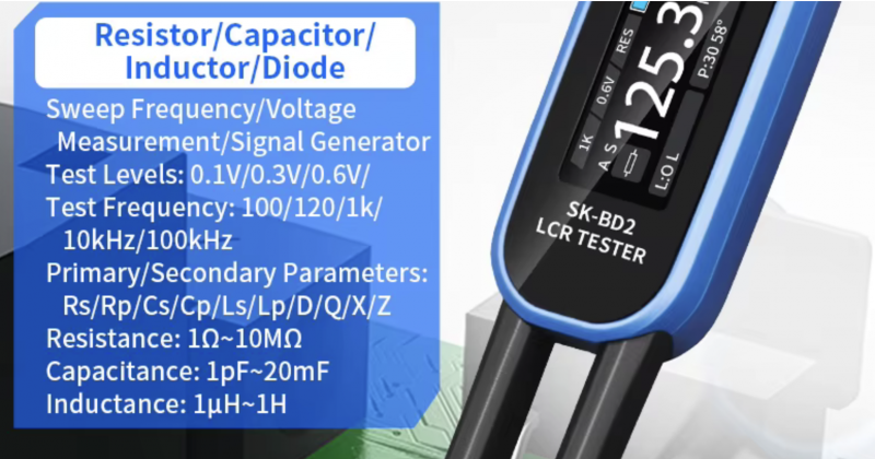 Параметры измерения — L, C, R, D, Q, ESRD/0/Z/φ, тест диодов