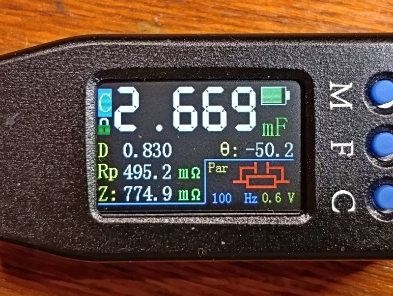 Теперь немного о самих измерениях. Показания меняются непрерывным потоком, как LCR-ST1 он не останавливается, типа выбери себе что пожелаешь. Процесс настолько идиотский что ставит местами (измерение емкостей) под сомнение необходимость в приборе вообще.