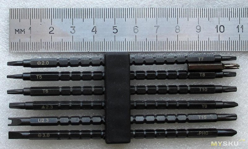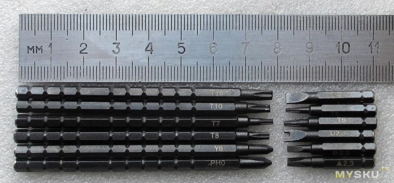 Размеры бит и ручки в исходном виде: