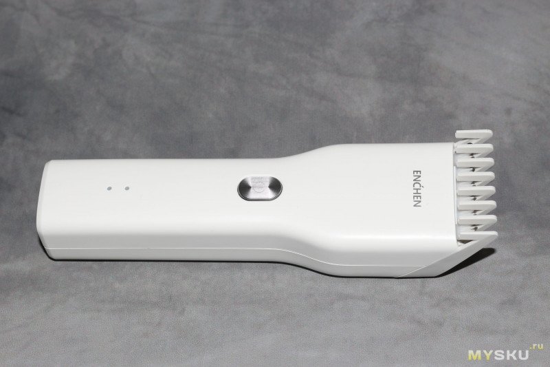 Машинка включается коротким нажатием. Удержание кнопки переключает скорости: на первой заявлены обороты двигателя 4500 об/мин, на второй — 5800. Во время работы машинка издает негромкое и не раздражающее жужжание.
