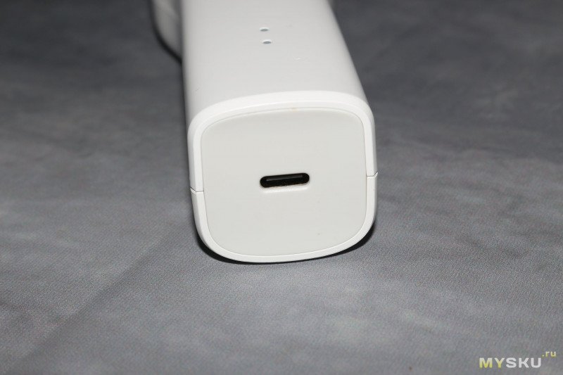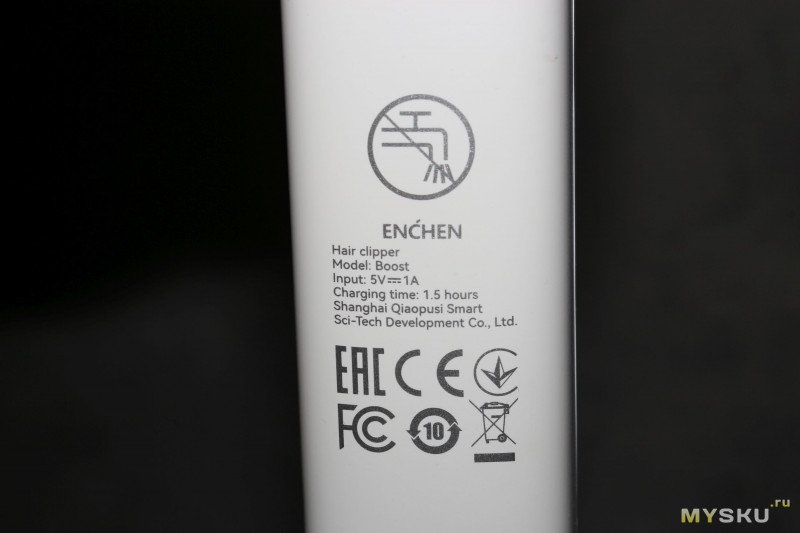 На задней панели нанесена информация о параметрах зарядки и пиктограмма, предупреждающая, что водозащиты у модели нет.