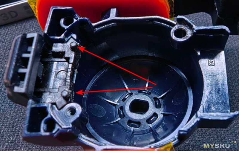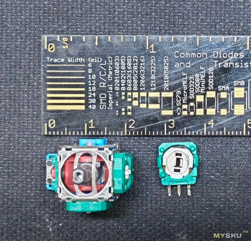 Стик с эффектом Холла на нижних фотографиях хорошо виден сам элемент Холла и магнит.
