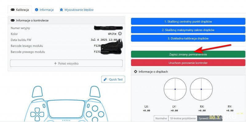 После замены стиков, джойстик необходимо калибровать, для этого я использую программу